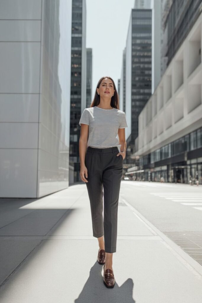 8. Striped Tee and Tailored Trousers