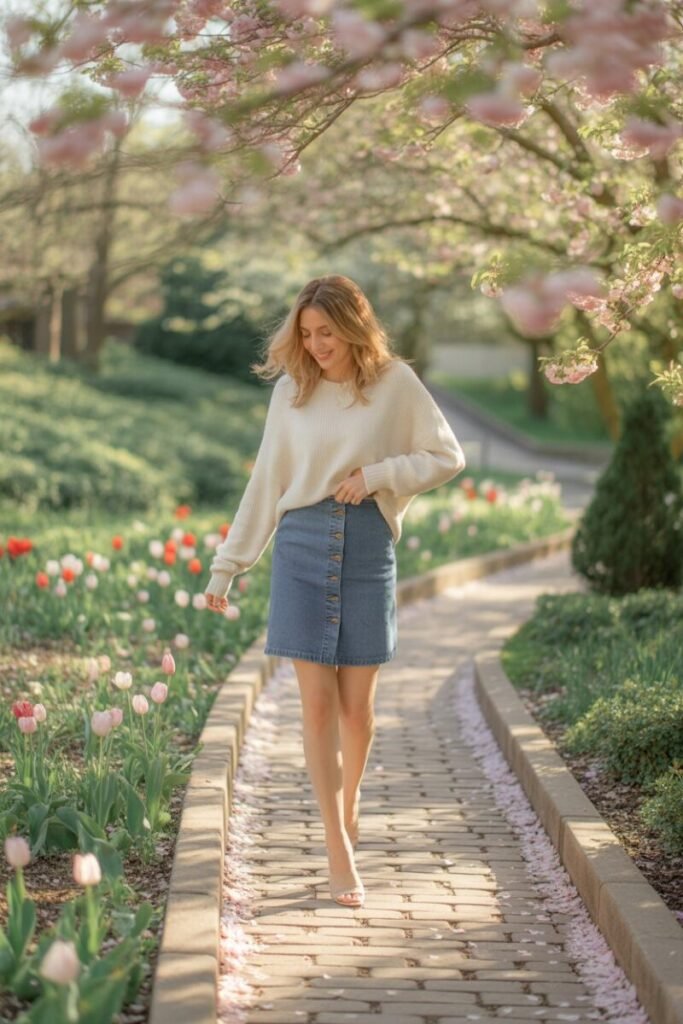 10. Denim Skirt and Lightweight Knit
