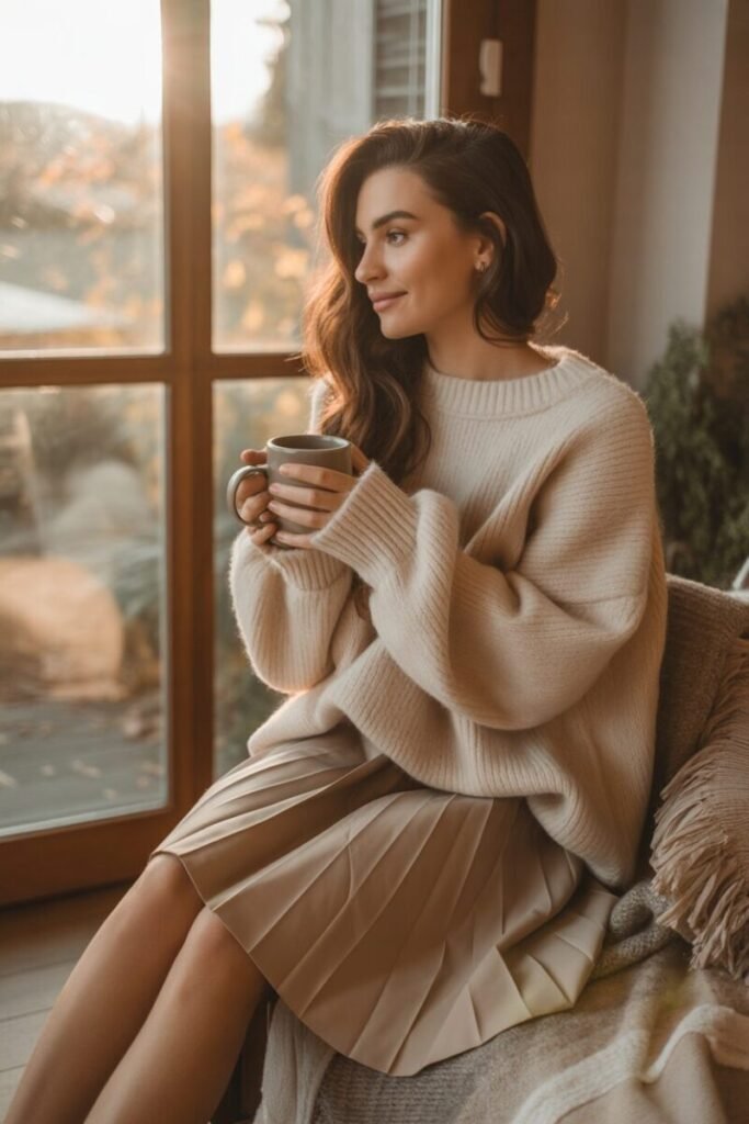 2. Cozy Beige Skirt with Oversized Sweater