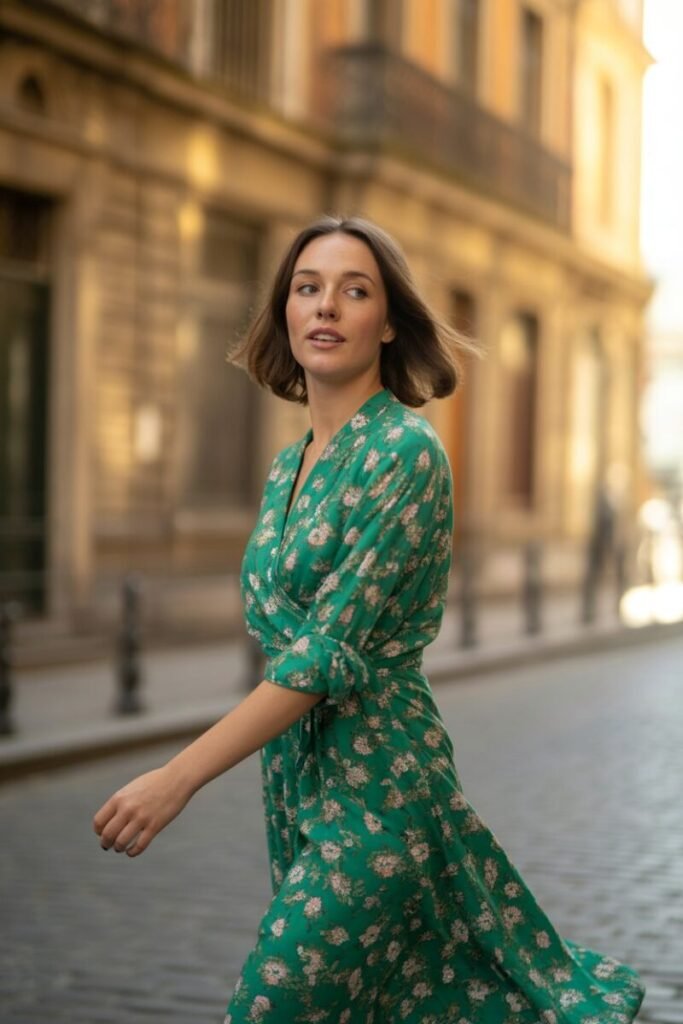 Spring calls for florals, and a wrap dress does it beautifully. This is my go-to move when I need something effortless yet chic. The one I love is a flowy, emerald green number with delicate pink flowers — I purchased it from Reformation. Its light crepe fabric moves with you, making it perfect for a sunny stroll.
