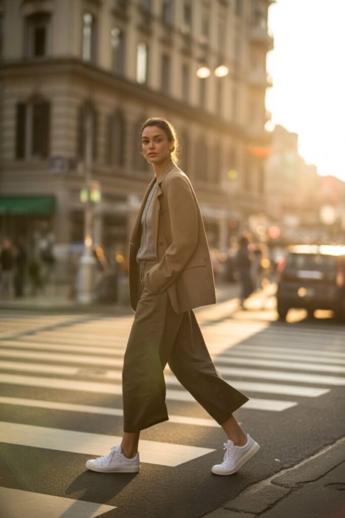 You can’t go wrong with classic white sneakers. I can’t tell you how many times mine have saved the day when I needed a chic but casual look. My favorite pair is from Veja, with a minimalistic design and subtle gold accents. They’re comfortable and go with literally anything.