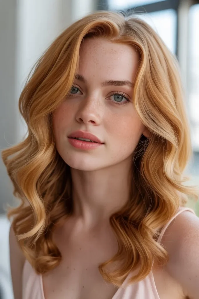1. Soft Strawberry Blonde Waves