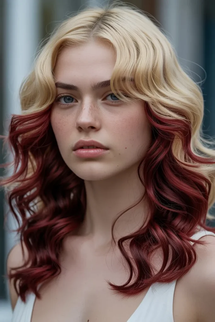Cherry red accents bring a deeper and bolder red shade to blonde hair. This style feels strong yet elegant. It is perfect for women who love confident and stylish looks.