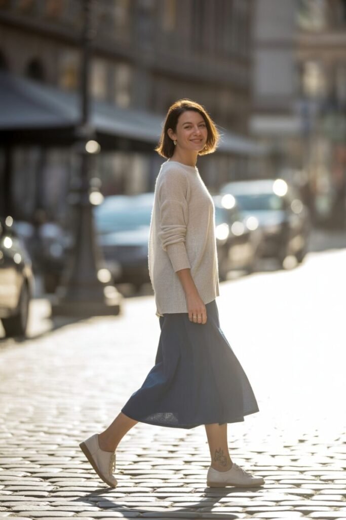 Knit sweaters, especially in lighter textures, are ideal for breezy spring days. Combine them with a midi skirt in contrasting fabrics from Zara for a look that’s both comfy and chic. I noticed how stepping out in different textures adds an unexpected depth to your outfit. Go ahead and embrace that asymmetrical hemline for a playful touch.