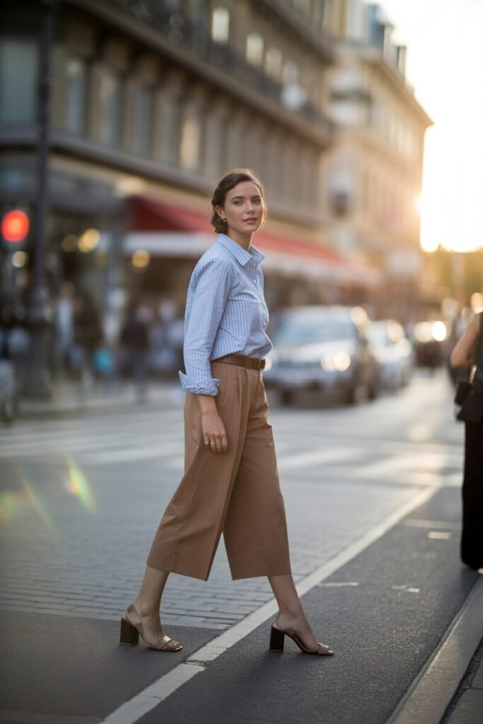 Culottes paired with a crisp button-up shirt are a bold yet professional choice. I can’t tell you how many times this outfit has turned heads at the office. Opt for cotton or linen button-ups and pair them with culottes in striking colors. Add a pair of pointed-toe flats for a sophisticated edge. Trust me on this one.