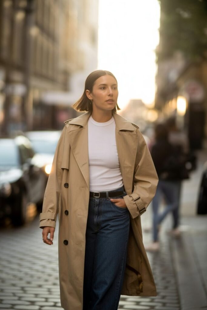 8. Belted Trench Coat with Dark Denim