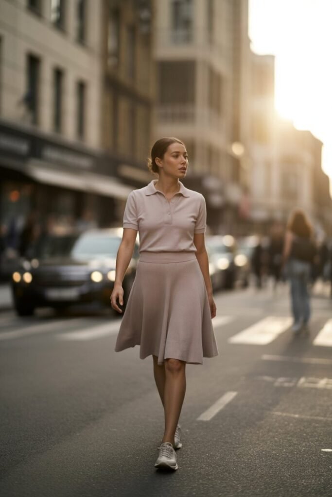 12. Knit Polo with A-Line Skirt